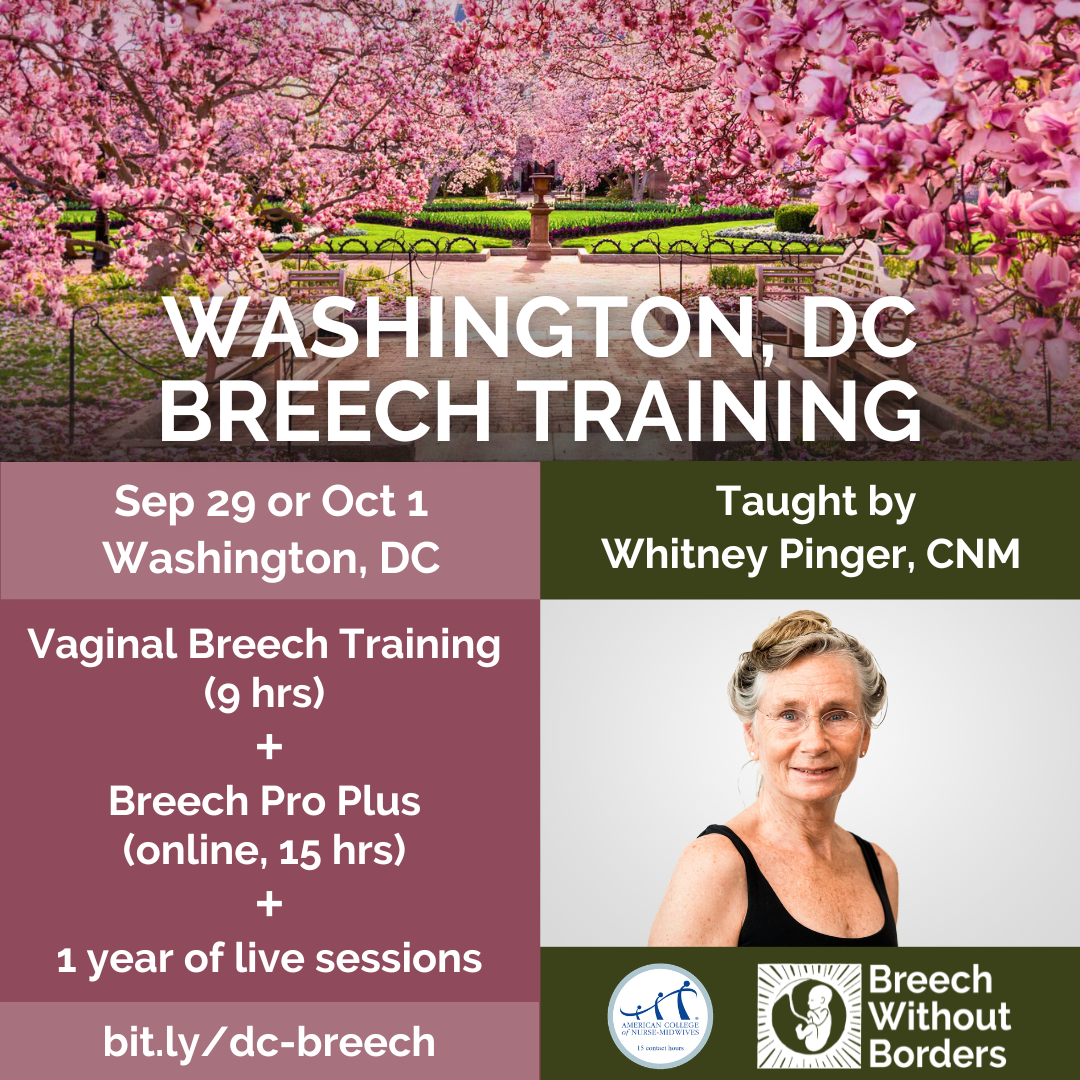 - Washington, DC, September 29 & October 1 with Whitney Pinger (Breech Training)