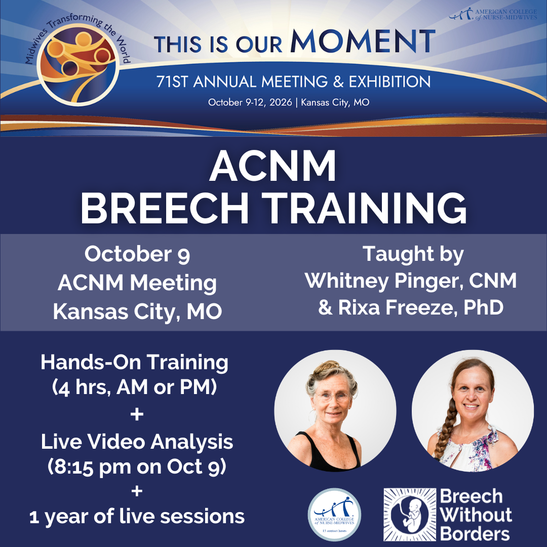 - Cambridge, MA (Mount Auburn Hospital), April 15 with Whitney Pinger (Breech Training)