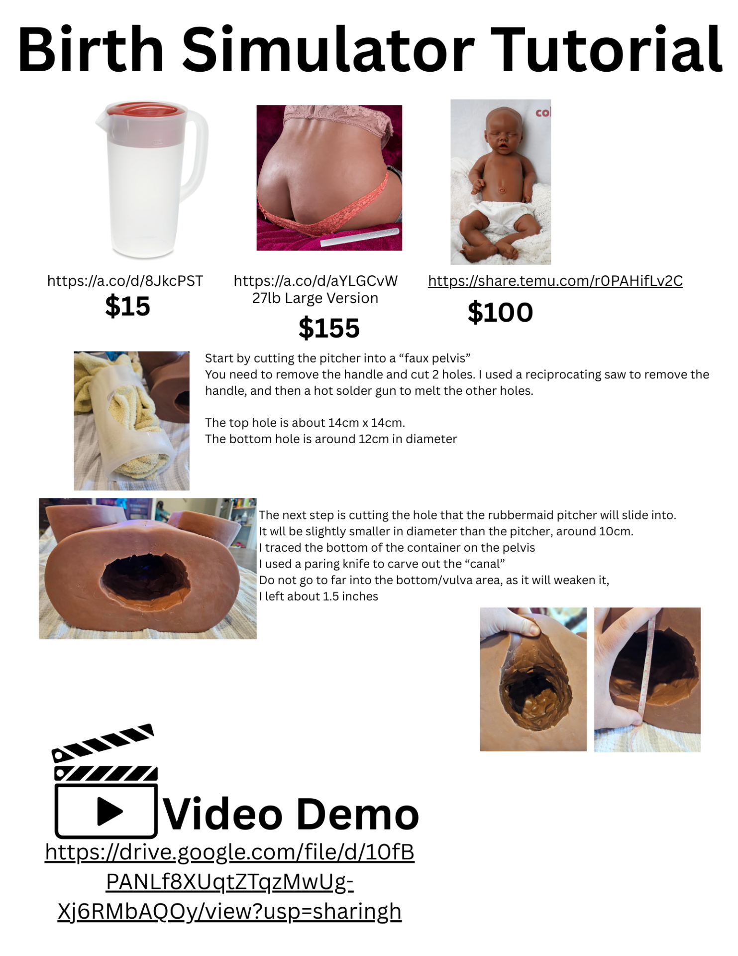 While we love the Sophie and Her Mum simulator, we also realize that not everyone can afford it. We were contacted by a student midwife in the US who used a silicone torso from Amazon (WARNING: not work appropriate!) and a 100% silicone baby from Temu to make a DIY simulator.